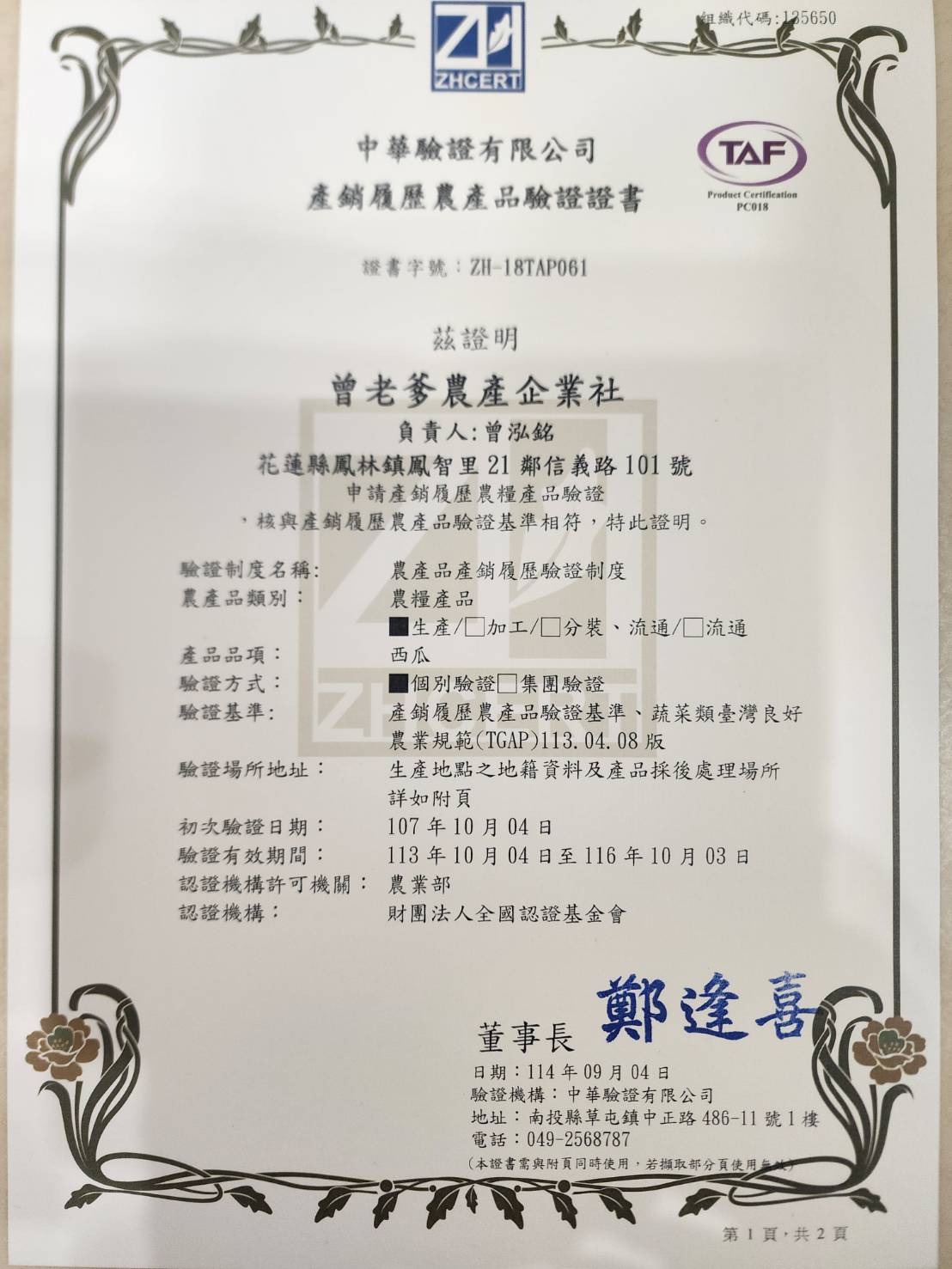我們的農產品通過「農產品產銷履歷驗證」,從種植、生產到出貨,每一個環節皆完整記錄,並經過第三方驗證機構嚴格把關。